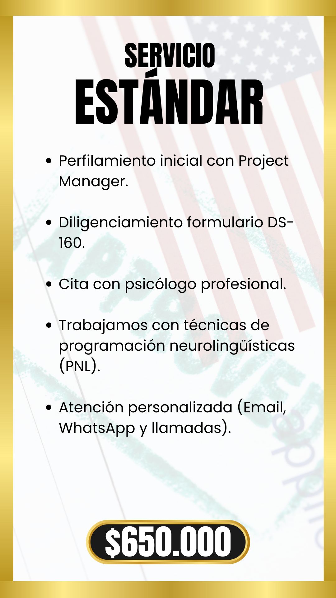 – Diligenciamiento del formulario DS-160 – Perfilamiento con Project Manager